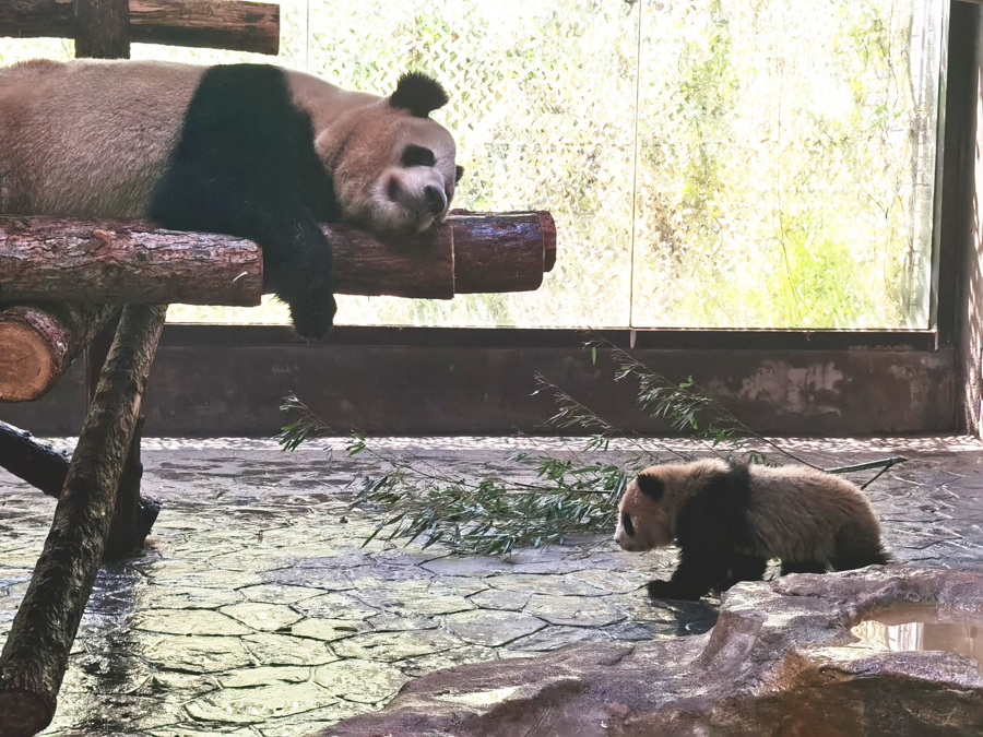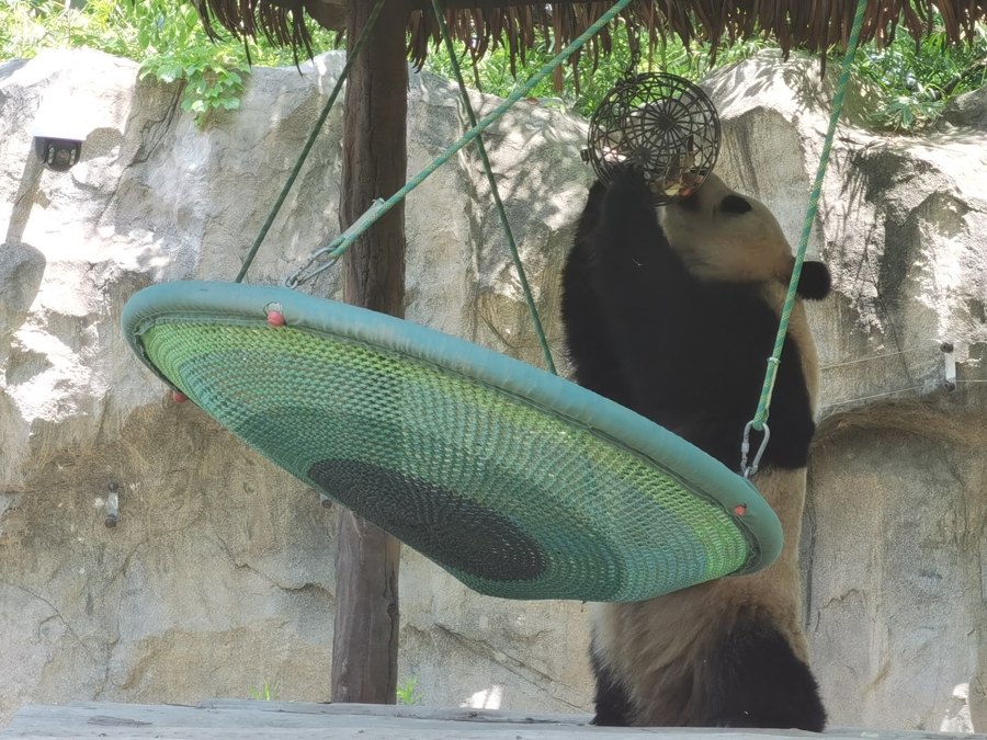 正是考虑到“芊真”的性格特点,上海野生动物园升级了熊猫展区,重点加高了四周护栏,增强它的安全感。这份安全感让“芊真”偶尔“社牛”起来,有一次被保育员发现,它居然会爬到高处和邻居“康康”打招呼。