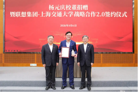 【2026年4月6日,上海】4月6日下午,上海交大建校130周年之际,“杨元庆校董个人捐赠暨联想集团—上海交通大学战略合作2.0签约仪式”在闵行校区举办。联想集团董事长兼CEO,上海交大校董、1981级计算机系校友杨元庆宣布,以个人名义向母校捐赠2亿元人民币,用于支持徐汇校区教三楼的旧楼改造焕新,改造后该楼将用于支持人工智能学科的科研创新和人才培养。这是他向母校上海交大发起的第三次个人捐赠。