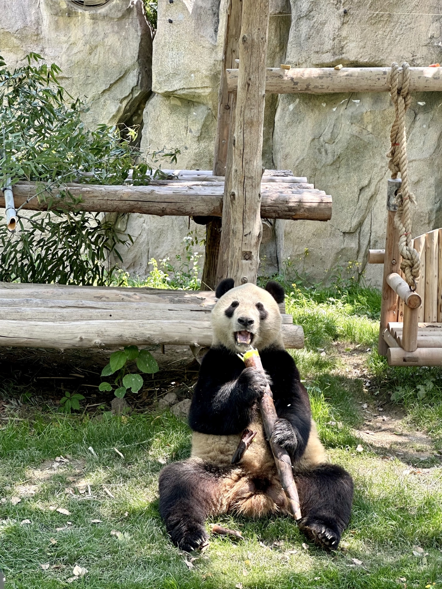 园方介绍,“芊真”于2020年7月26日出生于四川,是大熊猫“芊芊”的女儿,也是“芊金”的姐妹、龙凤胎“芊然”与“芊逸”的小姨。它的脸蛋圆圆的,睫毛长长的,再加上一对标志性的“小鸟”眼圈,是标致的“大美熊”。经过循序渐进的脱敏训练后,目前“芊真”已从后场来到了前场展区,成为游客镜头聚焦的核心,令熊猫家族更显温馨。