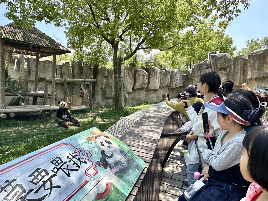 除了“芊真”外,游客也可以看到“芊金”带着龙凤胎在户外自在嬉戏的模样。大熊猫科普沉浸式体验馆也同步升级中,影像动态投影室首次开放,游客可以通过大熊猫短片全方位深入了解这一物种。